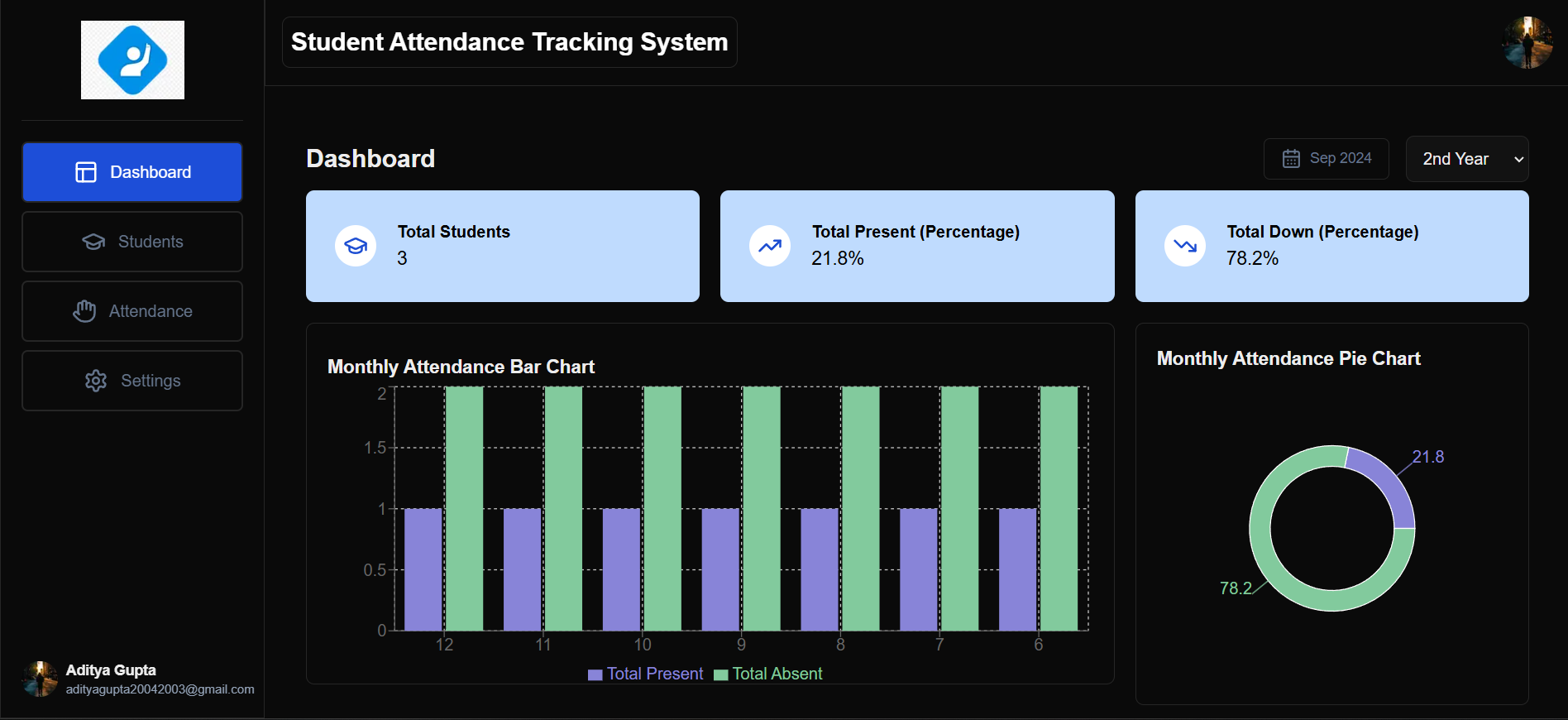 This Project is build to track the attendance record of the students. Build using advanced technologies like NextJS, ReactJS, Postgres, Drizzle ORM, Kinde Auth Service etc.